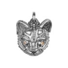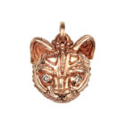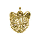 Eines der signifikanten Core-Pieces aus der Kollektion „Animals & Stones“: Massiver Katzenkopf-Anhänger mit Steinaugen. Die Katze steht für das Geheimnisvolle und das Intuitive. Steine nach Wahl.