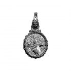 Christophorus war ein frühchristlicher Märtyrer, der als Heiliger verehrt wird. In der Ikonographie häufig als Hüne mit Stab dargestellt, der das Jesuskind auf den Schultern über einen Fluss trägt. Bekannt als Schutzheiliger der Reisenden.