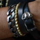 Die Glieder des massiven Panzerarmbands sind in sich um 90 Grad gedreht und liegen deshalb besonders angenehm auf. Panzerarmbänder erlebten in den 1990ern ihre Renaissance und sind heute ein Klassiker unter den Herrenarmketten.