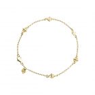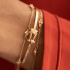 Fünf zart verzierte Schmuckelemente eingearbeitet in eine feine Ankerkette. Muffs signifikante Formensprache, die sich durch feine Details, kleine Nieten, Noppen und Dots auszeichnet, gelingt ein Twist zwischen antiker Anmut und zeitloser Moderne.