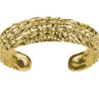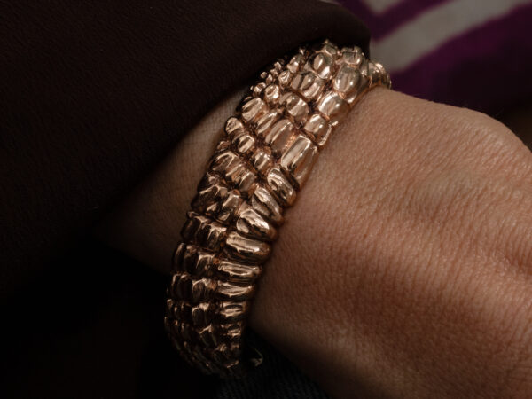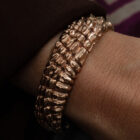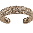 Mit der Kollektion „Animals & Stones“ erweitert Patrik Muff die Serie der geschnitzten Armreife durch einen extrabreiten mit Krokohaut.