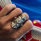 Der massive Kraftring wurde mit ca. 0,77 ct. Feinweißer Brillanten ausgefasst und ist ein Signature Piece von Patrik Muff. Inspiriert von nordafrikanischem Schmuck, insbesondere dem Schmuck der Tuaregs.