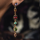 Verschiedene Formen und Farben leuchtender Edelsteine aneinander gereiht zu wunderschönen Ohrhängern.