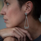 Die Ohrring-Kollektion »Frames« ist eine Serie von filigranen Ohrhängern in diversen geometrischen Formen. Die Kombinationen von Stecker und Hänger spielen mit Kontrasten und setzen der Form des Rahmens jeweils eine andere entgegen.