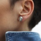 Angelehnt an die Form von Nuggets (urspüngliche, natürliche Form von Metallfunden) entwirft Muff Ohrstecker mit Symbolen zum Thema SEHNSUCHT.