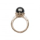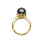 Gut kombinierbarer Solitärring mit (Zucht-) Tahitiperle. Durch Muffs signifikante Formensprache, die sich durch feine Details, kleine Nieten, Noppen und Pünktchen, auszeichnet,