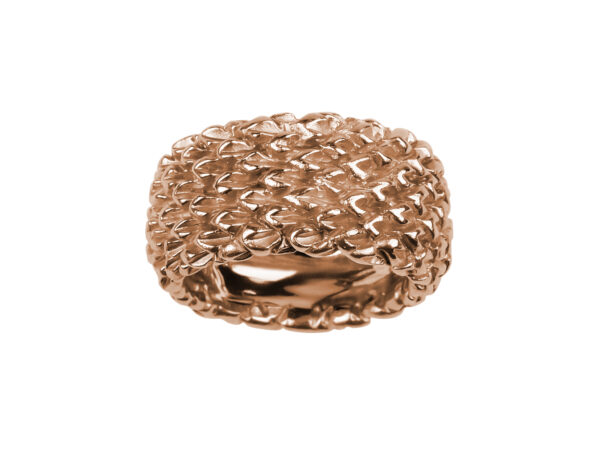In der Kollektion „Animals & Stones“ kreiert Patrik Muff Bandringe mit einer signifikanten Gravur von Tierschuppen.