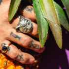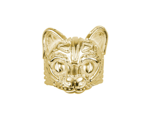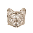 Eines der signifikanten Core-Pieces aus der Kollektion „Animals & Stones“: Massiver Katzenkopf-Ring wahlweise mit Steinaugen. Die Katze steht für das Geheimnisvolle und das Intuitive.