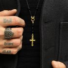 stilisierter Textil-Rosenkranz mit Knoten fixierten Onyxkugeln