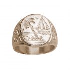 Klassische Siegelringform in typischem Muff-Design. Die Trauminsel ist das Signature-Symbol der Kollektion SEHNSUCHT. Sie vereint die Attribute Palme, Meer und Segelboot, Auslöser für Fernweh und Sehnsucht nach unserem ultimativen Place-to-be.