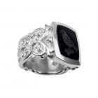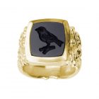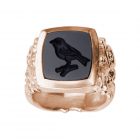 Das Formenarchiv von Patrik Muff umfasst zahlreiche Modelle mit Gravuren in Metall oder Gemmenstein. Dieses Siegelring Modell besticht durch seine schlichte rechteckige Ringkopfform im Kontrast zur gotisch anmutenden Schienengravur. Als Gemmenstein wurde schwarzer Onyx gewählt. Das Siegelmotiv zeigt einen Singvogel. Bei Wunsch eines anderen Motivs sprechen Sie mit unseren Experten. Der Siegelring diente früher als Stempelsiegel und symbolisierte Macht und Autorität. Heute ist er wieder populär und wird überwiegend als Zeichen für die Zusammengehörigkeit und die Identifikation mit der Herkunft getragen.