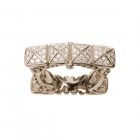Dieser Pavéring ist inspiriert durch die Punkbewegung und seine signifikanten Nieten. Patrik Muff veredelt das Stück mit einem halben Carat feinweißer Brillanten und spielt mit dem Kontrast zwischen Punk und Luxus. Das Nietenband legt sich wie ein Bügel über den Finger, die seitlichen konkaven Rundungen fixieren den Ring.