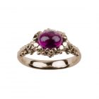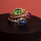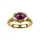 Ovaler Rhodolith mit Cabochonschliff wahlweise in Gelb-, Rot- oder Weißgold oder Silber gefasst (leichte Farbabweichung durch Bildschirmdarstellung möglich). Carlotta heißen die zarten Solitärringe von Patrik Muff. Sie lassen sich untereinander gut kombinieren, da sich die Fassungen ideal ineinander schmiegen. Muffs signifikante Formensprache, die sich durch feine Details, kleine Nieten, Noppen und Dots, auszeichnet, gelingt ein Twist zwischen antiker Anmut und zeitloser Moderne. Bei Interesse, fragen Sie uns nach anderen Farbsteinen.