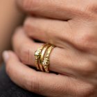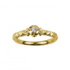 Superzarte Fassung mit einem feinweißen Brillanten (ca. 0,06 ct.) wahlweise in Gelb-, Rot- oder Weißgold gefasst. Carlotta heißen die zarten Solitärringe von Patrik Muff. Sie lassen sich untereinander gut kombinieren, da sich die Fassungen ideal ineinander schmiegen. Muffs signifikante Formensprache, die sich durch feine Details, kleine Nieten, Noppen und Dots, auszeichnet, gelingt ein Twist zwischen antiker Anmut und zeitloser Moderne.