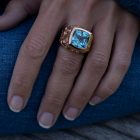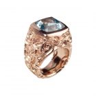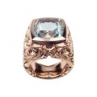 Dieser atemberaubende Aquamarin macht diesen Cocktailring zu einem echten Unikat. Das kühle siginifikante Blau des Aquamarins im Antikschliff mit 10,68 ct. kombiniert Patrik Muff mit einer 18 karätigen Rotgoldfassung. Tiefe, frei interpretierte, Maorigravuren im typischen Muff-Stil setzen einen spannenden Kontrast zum Edelstein. (Leichte Farbabweichnungen können sich aufgrund der Bildschirmdarstellung ergeben)