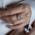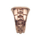 Die Fläche des massiven Rotgoldrings (18 kt) ist mit feinweißen Brillanten ausgefasst (top wesselton si, ca. 0,5 ct.).