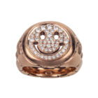 Der klassische Siegelring erhält seinen Twist durch die Darstellung eines Smileys mit durchbrochenen Linien statt eines Wappens.